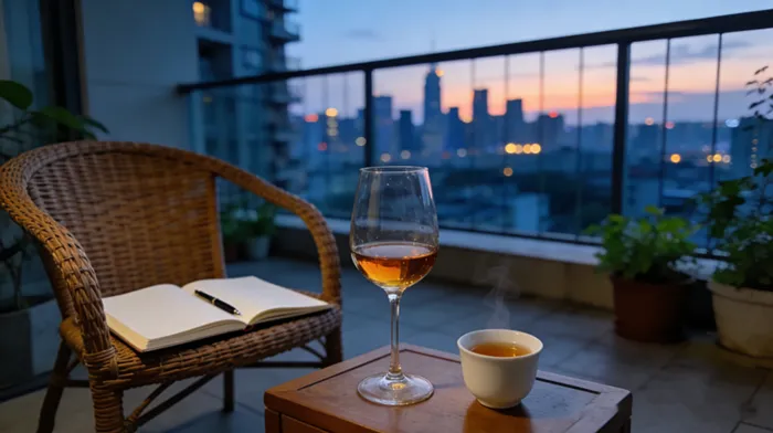 傍晚阳台一杯泡好的药酒,适合睡前喝,改善睡眠的日常养护