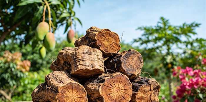 抗疲劳保健酒核心配伍药材牛大力产地实拍,展现其作为岭南道地药材的原始形态,特别适用于广东湿热气候下由脾肾阳虚、痰湿过重引发的腰膝酸软与疲劳调理。