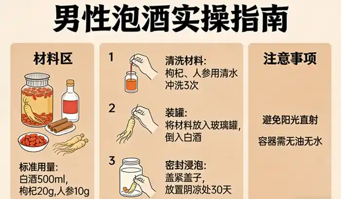 - 关键提醒:泡酒前,一定要把容器用沸水烫洗干净,晾干至无水分,避免残留水分导致白酒变质、药材发霉,这一步千万别偷懒,很多新手泡酒失败,就是因为容器没晾干。